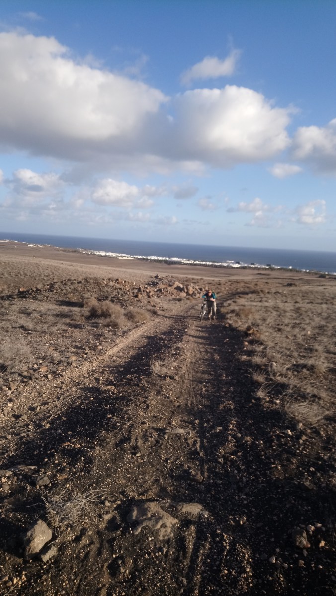 De wind vliegt over het eiland. Vandaag gaan we fietsen. We halen de citybikes uit de container (zie 24. Mee) en klauteren het landschap in. Stenen, stof, de weg is een autospoor, en de zee in de diepte. We fietsen en we stappen af, weer erop en zo door, de bandjes dun, geen grip. De route leidt naar beneden.