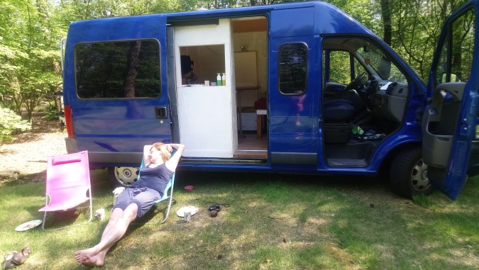 Ze zeggen dat de insectenpopulatie zo terugloopt, en dat dat de wereld zoals ie is, hierdoor wordt bedreigd. Dat geloof ik, en vind ik erg. Autoruiten blijven schoon, daar kun je het al aan afmeten. Bij onze ruit is dat niet zo. Nu hebben wij natuurlijk een grote. Pok pok pok, horen wij op roadtrip. Grote gouden kevers vliegen tegen ons aan. En tegen de avond kletteren zwermen muggen.