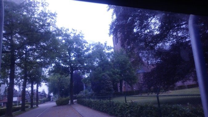 De nacht ertussen willen we doorbrengen bij de seniorenwoning van mijn vader. Er blijkt een houseparty in het bijbehorende kapelletje gaande, geen parkeerplaats meer over. We weten nog wel een plekje in de buurt, plaats genoeg. Alleen moeten we tussen twee bomen parkeren. Het lukt niet. Ik ga het ook proberen. De eerste keer achter het stuur voor mij! Ik vind het heerlijk hoor. Ik zet ons midden op de weg. Dat kan niet. Dus verder. Een half uur later staan we dan, naast de kerk. Mijn vader woont aan de andere kant van de kerk. Mijn moeder op het bijbehorende kerkhof, en zij is morgen jarig. Het voelt fijn, ik wil naast het raampje slapen, met zicht op mijn ouders. En slaap als de beste.