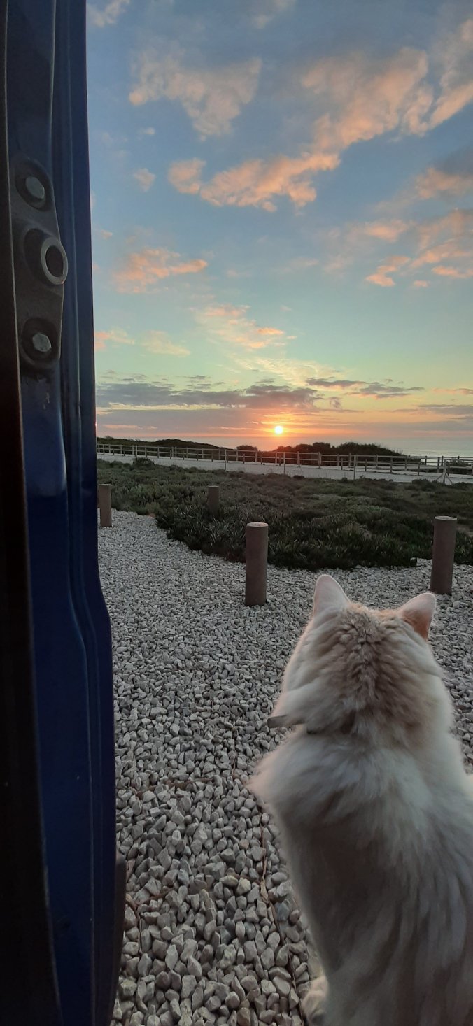 Omdat het zo lekker gaat, pakken we het eens anders aan. Want de zon is er steeds, aan de kusten, als we Portugal in zakken. De katjes zijn ervaren en ook overal thuis. Mijn hoogtevrees is ingedamd en Tillie houdt zich aan de maximumsnelheid.