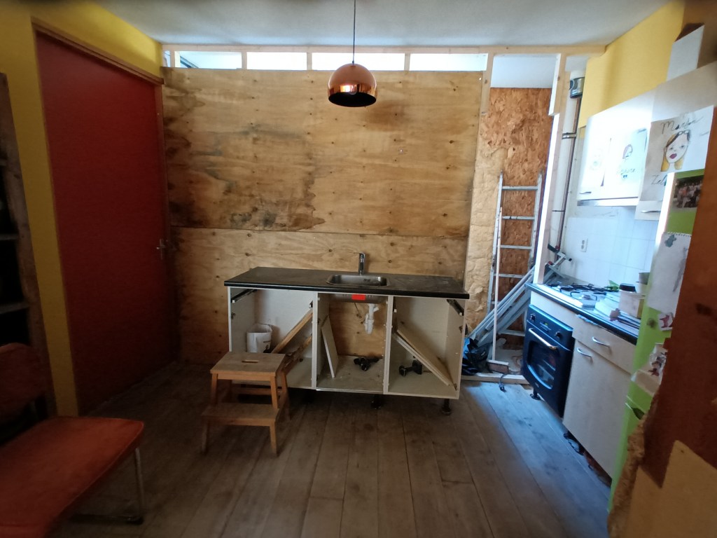 Maar met een inbouw zijn we zeker zo blij, een beetje déconsumeren, terrein aan de natuur teruggeven, en vooral ook dat we dankbaar waren dát er überhaupt bouwvakkers gekomen zijn. Morgen komen ze het water aansluiten. Wij gaan dan afstoffen en aan ons nieuwe leven beginnen.